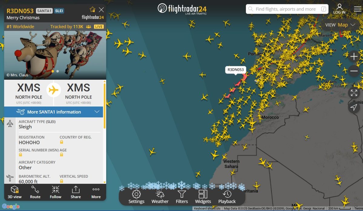 Bár Magyarországon december elején hoz mindenféle finomságot és különböző meglepetéseket a Télapó a kicsiknek-nagyoknak, a világ több országában úgy tartják, hogy december 24-én járja körbe a Földet, hogy elvigye a gyermekek ajándékait. A Flightradar24 pedig ismét élesítette a hagyományos Mikulás-követő funkcióját. A „SANTA1”, „HOHOHO” vagy a rénszarvas orrára utaló „R3DNO53” hívójellel ellátott szán valós időben követhető, ahogy elképesztő tempóban szeli át az eget. Az oldal azt is bemutatja, milyen járművel közlekedik a Mikulás, honnan hová tart, milyen sebességgel közlekedik. Ráadásul, hogy még könnyebben követhető legyen, a többi repülőtől eltérően egy rénszarvasok húzta szán a Télapó ikonja.