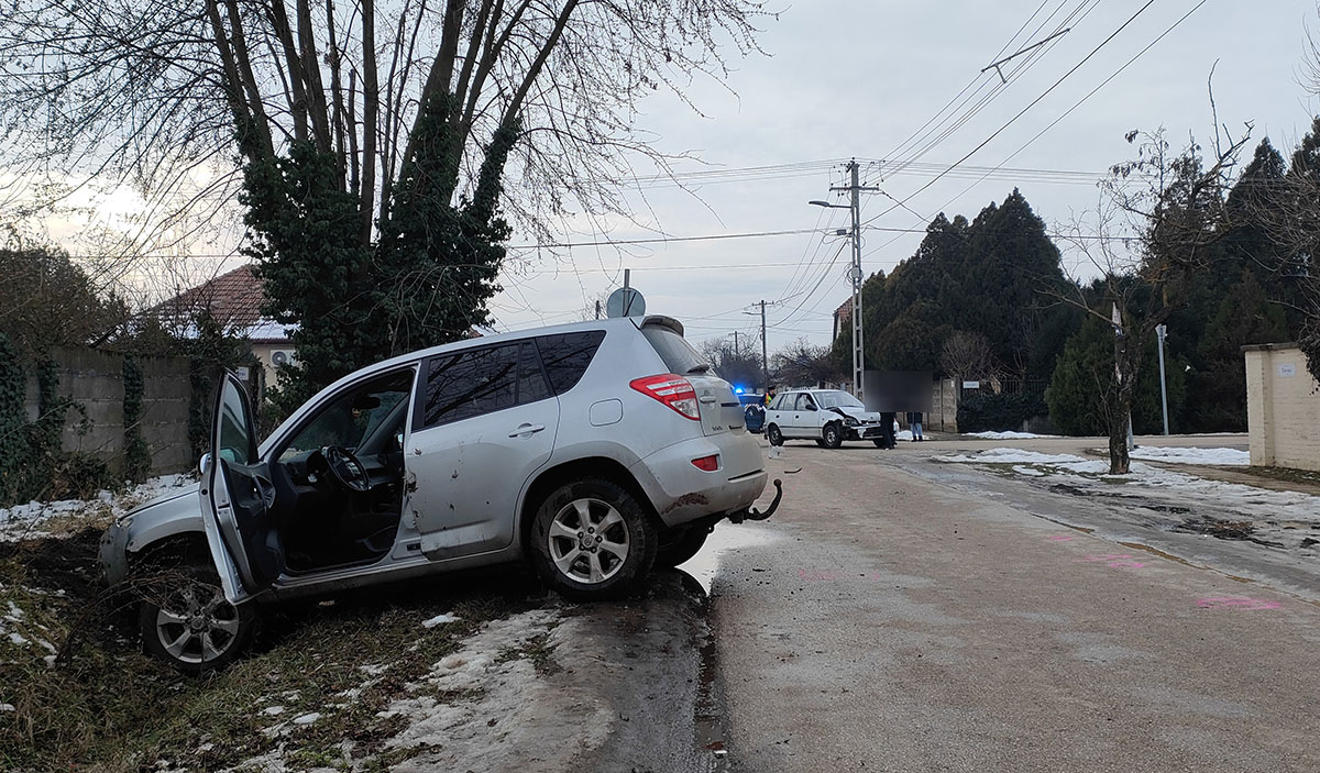 Összeütközött két személyautó Békéscsabán, a Szegfű és a Tavasz utca kereszteződésében, péntek délután.
