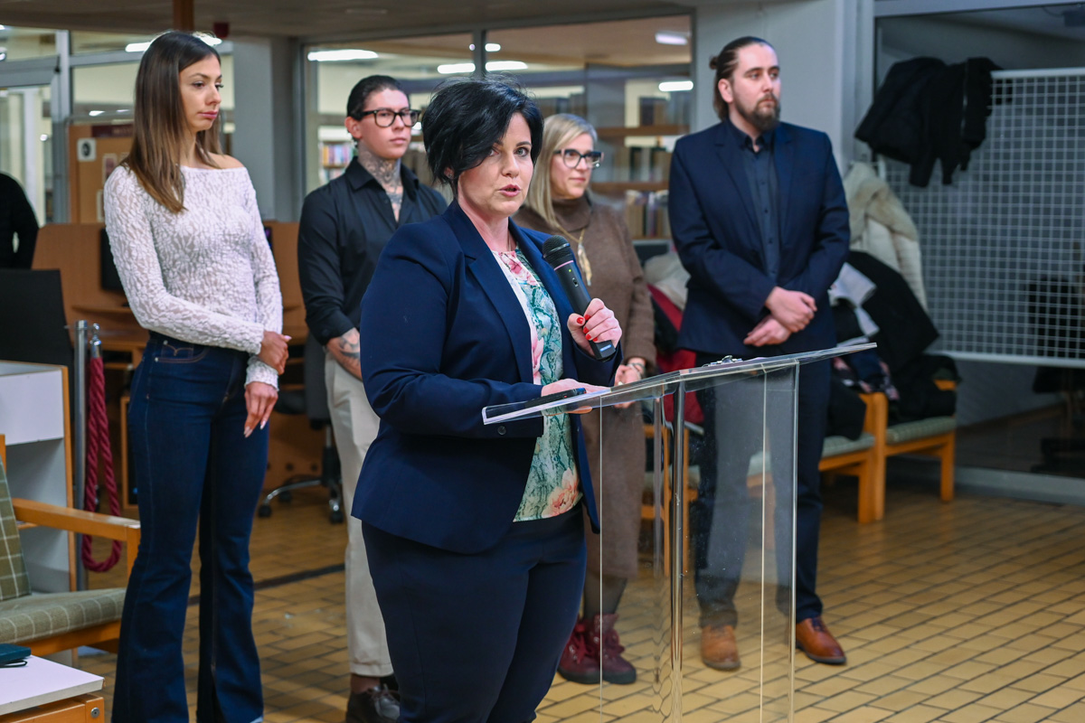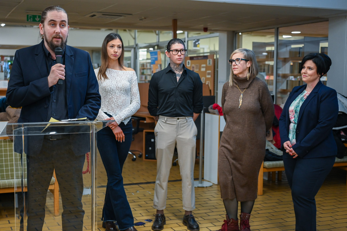 A megnyitón Juhász Zoltán, a könyvtár igazgatója is örömét fejezte ki a nagy érdeklődés láttán, kiemelve, hogy az intézmény fontosnak tartja a helyi tehetségek felkarolását. Végigvette, mennyire színes programkínálat várta a csabaiakat a könyvtárban ezekben a napokban. Ebbe a sorba tökéletesen illik az új időszaki kiállítás, amely remélhetőleg egy ugródeszka lesz a négy művész számára, akik szerettek volna előrébb lépni és az alkotásaikat fizikai valójukban bemutatni a közönségnek.