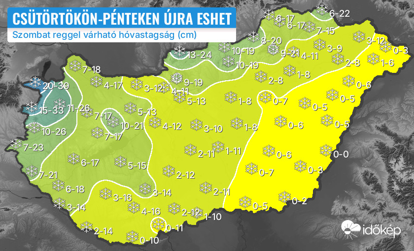 Az éjszakai órákban, annak is főként a második felében a ciklon hátoldalán észak, északnyugat felől megkezdődik a hideg, fagyos légtömeg beáramlása, így az esőt egyre többfelé havas eső, havazás váltja fel, legkésőbb – péntek este, éjjel – délkeleten. A hőmérséklet jelentősen visszaesik, sokfelé behavazódik a táj, a legtöbb hó az ország északi és nyugati vidékein hullhat, 10, néhol 20 centiméternél vastagabb hótakaró alakulhat ki.