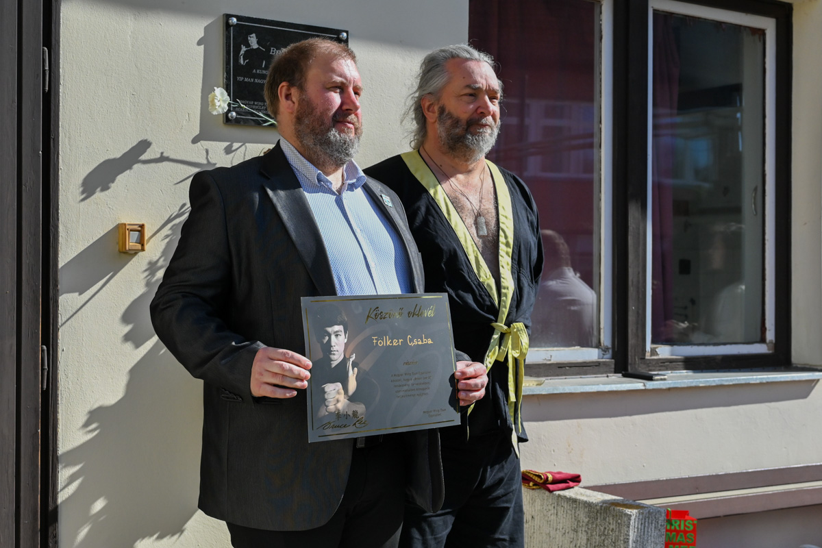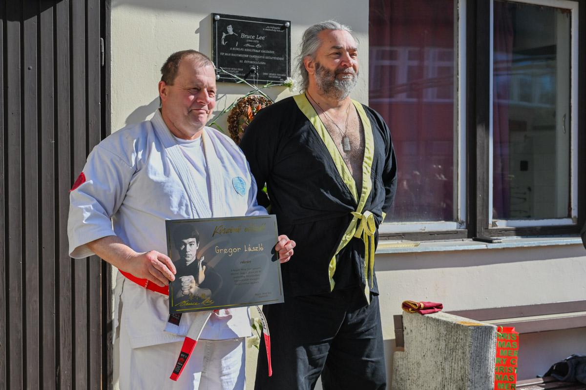 Az ünnepség zárásaként a Magyar Wing Tsun Egyesület külön elismeréssel köszönte meg az igazgatónak és Gregor Lászlónak a tábla elhelyezéséhez nyújtott szakmai támogatást.