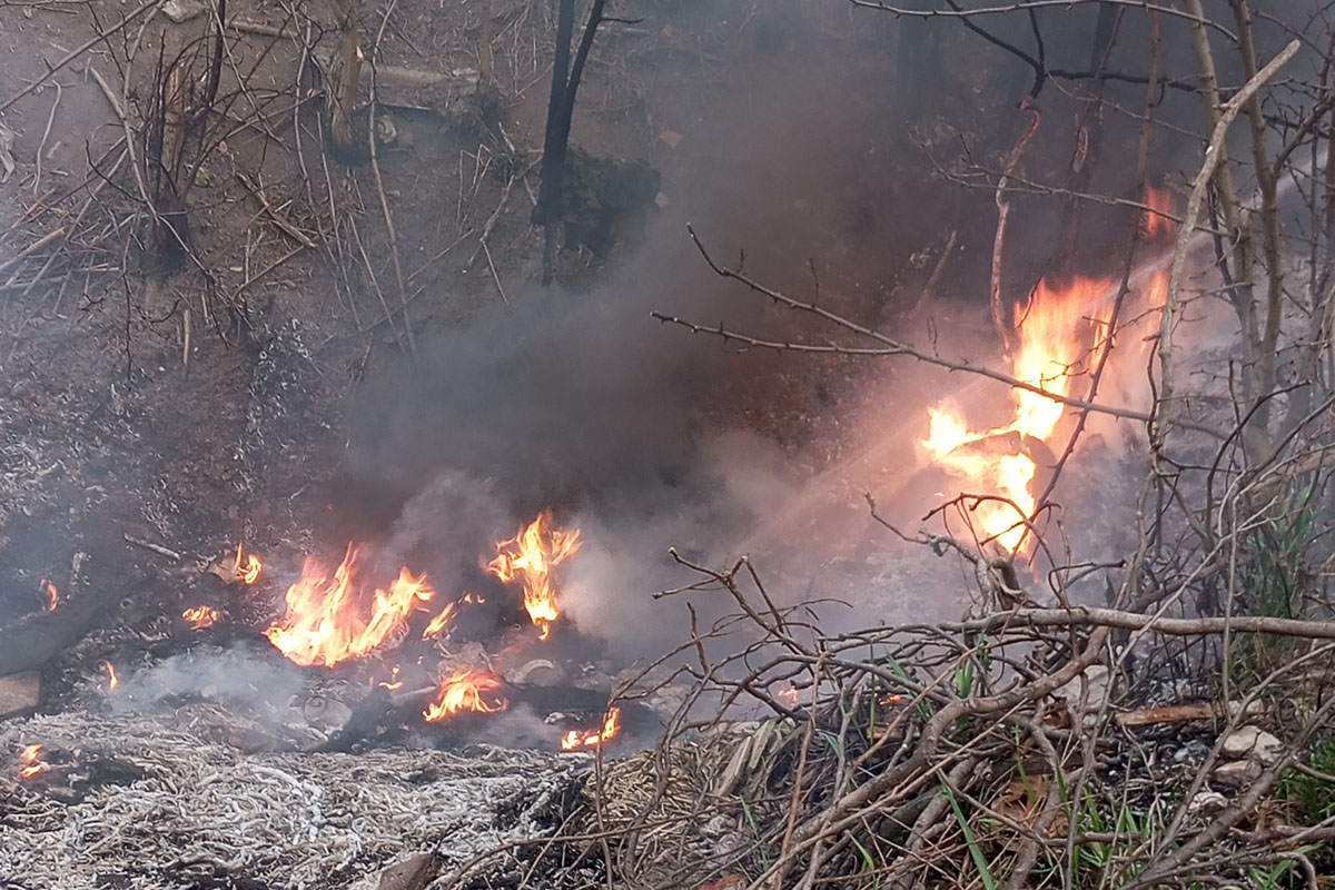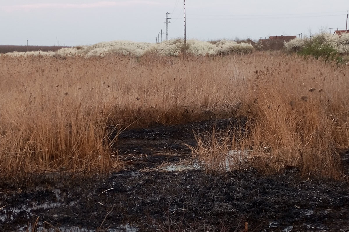 Nádas, száraz fű és hulladék égett mintegy ezerötszáz négyzetméteren március 26-án délután Sarkadon, a Gólya utcában. A lángok gyorsan terjedtek a száraz növényzetben.