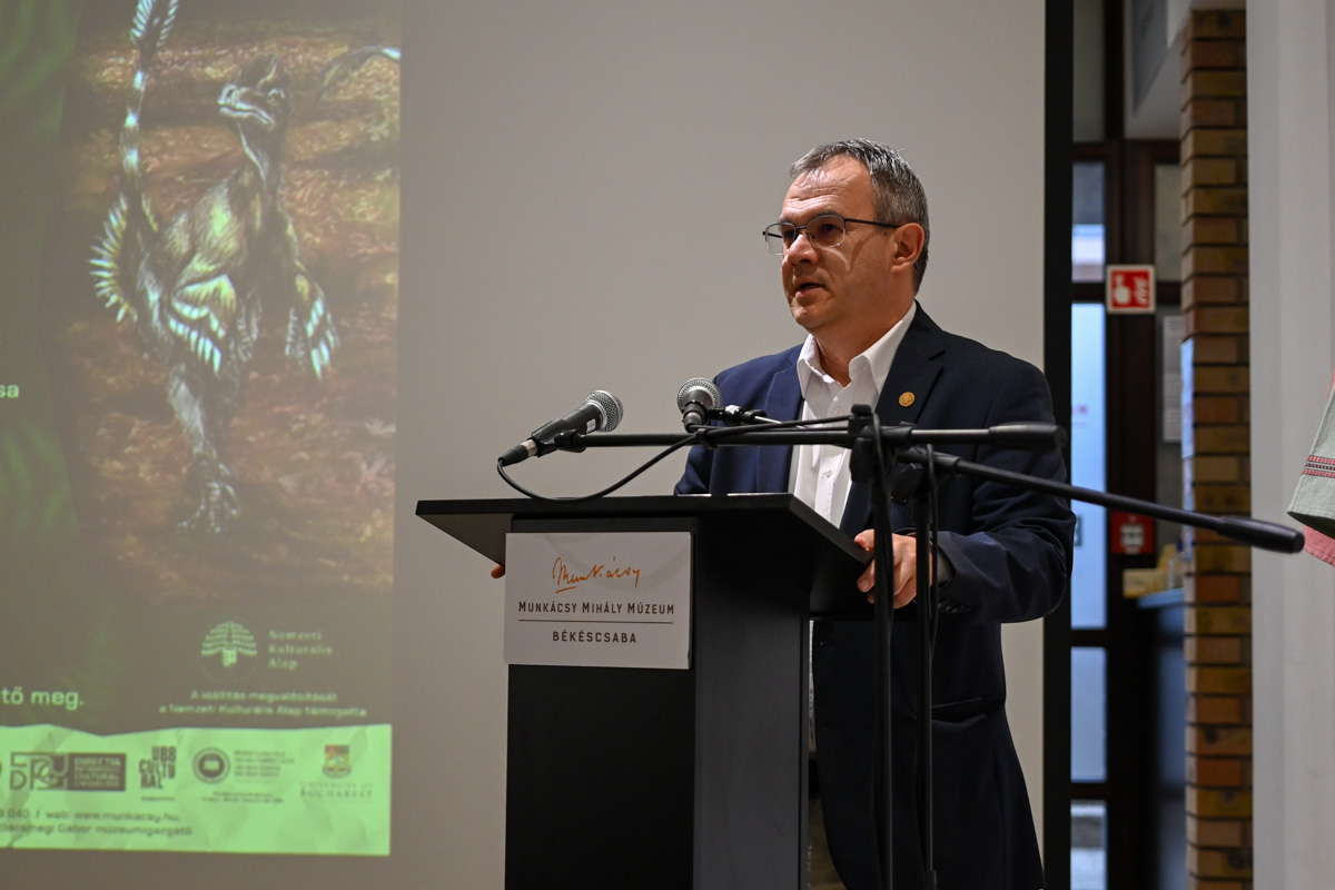 Dr. Ősi Attila paleontológus, a Magyar Dinoszaurusz Alapítvány kuratóriumi elnöke köszöntő beszédében felidézte a kutatás kezdeti bizonytalanságait, az első bakonyi eredményeket és a későbbi világraszóló sikereket. Mint megosztotta, a korábban Budapesten őrzött leletek itt, Békéscsabán olyan elemekkel egészültek ki, amelyeket még sehol máshol nem láthatott a közönség. Több éve, évtizede dolgozik mintegy félszáz szakember azon, hogy minél többet megtudhassunk ezekről az egykor itt élt állatokról.