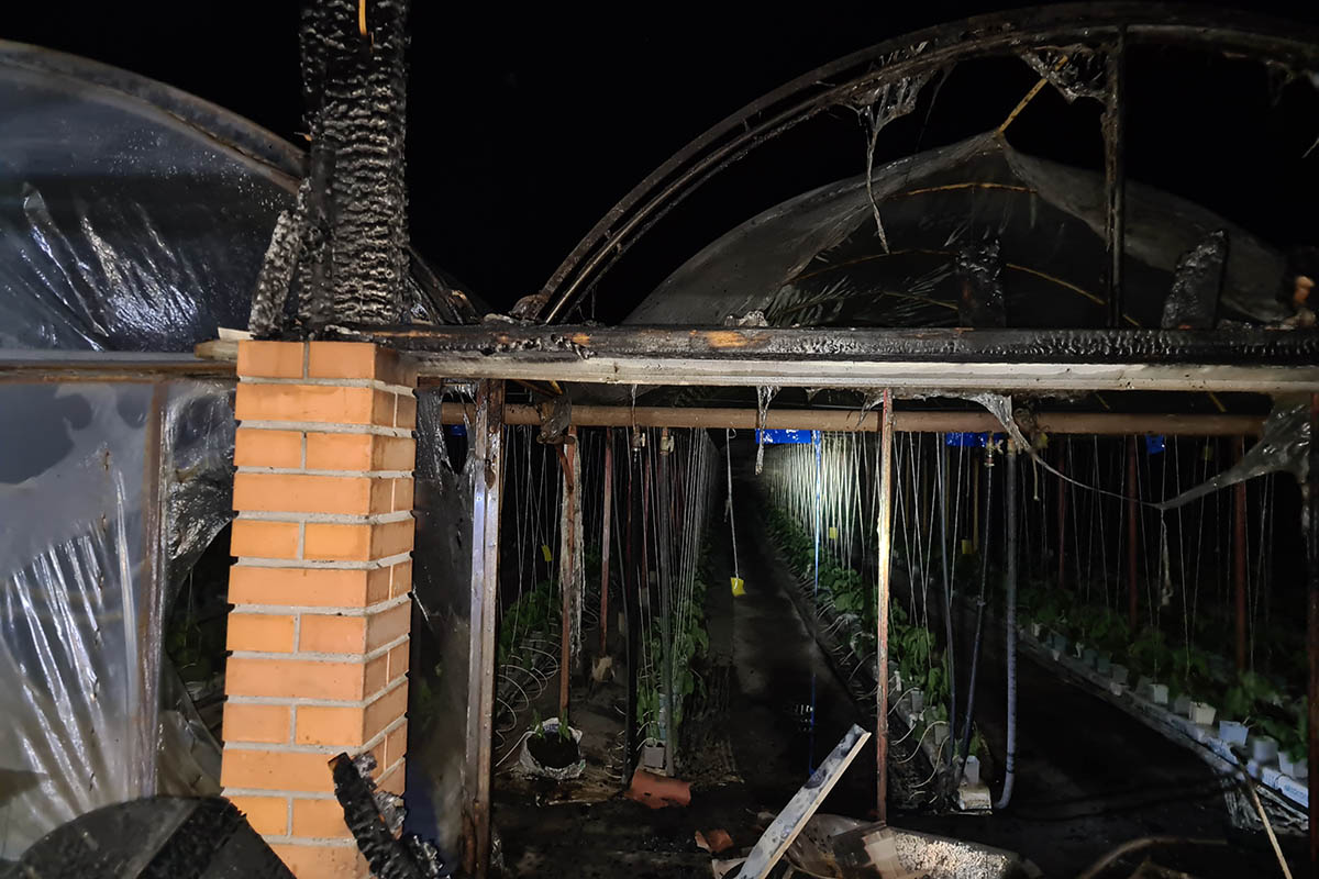 Egy ötven négyzetméteres kazánház teljes terjedelmében égett, a lángok a lakóépület tetőszerkezetét is érintették, valamint egy közeli fóliasátor borítása is megrongálódott.