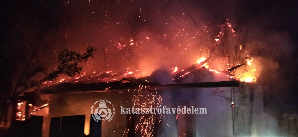 Tegnap éjszaka egy kunágotai lakóházban csaptak fel a lángok, melynek tetőszerkezete teljes terjedelmében, továbbá helyiségeinek jelentős része is égett.